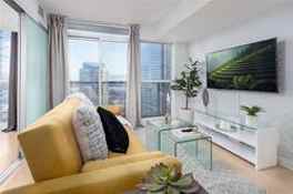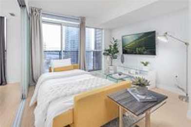 Luxuriously Furnished And Sundrenched One Bedroom + Den (Usable As 2nd Bedroom) In Heart Of Downtown Toronto! Modern And Upscale Unit With Laminate Flooring. Picturesque South Lake View With Juliette Balcony. Kitchen Boasts Granite Countertop, Ceramic Backsplash & Modern Finishes. Functional Layout With Quality Building Amenities Including: Concierge, Gym, Indoor Swimming Pool, Basketball Court, Party Room & Much More! Parking, Locker, & Wifi Included!
