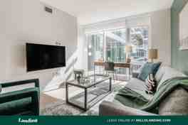 When you enter your Landing home for the first time, you'll notice the modern tones throughout, from the open concept floor-plan to the perfectly paired with the sleek kitchen with stainless steel appliances. Our included furniture and decor are expertly selected and placed for this individual layout, and the mounted Samsung Smart TVs are ready for your enjoyment. Finally, your home is filled with our convenience amenities from the luxurious bedding to the completely stocked kitchen. Every element of your new home invites you to step right into a hassle-free living experience.