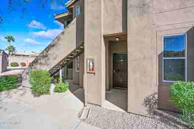 Scottsdale Kierland located year round unfurnished condo at The Plaza Residences! Beautiful updated 1ST FLOOR 1 bedroom 1 bath condo with a one car GARAGE in a resort style gated complex. Very quiet location in the community but close to everything. Dining & Living rooms have beautiful upgraded hardwood flooring. Wood burning fireplace & above mantle is setup to attach a flat screen TV. Kitchen features upgraded maple cabinetry, 20'' x 20'' porcelain floor tile, granite counter tops & stainless steel appliances. Bedroom has carpet, ceiling fan & walk in closet. Bathroom has 20'' x 20'' porcelain floor tile, upgraded maple vanity w/ granite counter, & newer tiled walk in shower. Full size washer/dryer! Covered patio. Walk to world class shopping and dining. Water, sewer, trash included