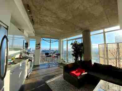 "The king east!" a boutique condo-loft in trendy king east designer's district. Excellent one bedroom on high floor with spectacular se view of the lake & city! Hardwood floor throughout, 9' exposed concrete ceiling, euro style scavolini kitchen, quartz counter top, under-mounted sink, SS appliances including gas stove, fridge, dishwasher, b/i microwave; stacked front-loading washer & dryer. Gas hook-up ready for bbq on balcony! 24 hrs street car @ door!