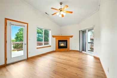 This beautiful 2-bedroom + den, 2-bathroom condo is being fully refreshed before its next resident moves in! The unit will feature brand-new flooring throughout — plush carpet in the bedrooms and luxury vinyl plank (LVP) in the main living areas. The LVP is the stunning “Cairo Oak” by Coretec. It will also be updated with new stainless-steel kitchen appliances. Located on the third floor, this spacious condo offers vaulted ceilings, a cozy gas fireplace in the living room, and two private balconies. The kitchen and dining area flow seamlessly together, and the home includes all appliances — including a dishwasher new in 2025 and an in-unit washer and dryer replaced in 2024. Ceiling fans add extra comfort, and one garage stall under the building is included. Residents also enjoy free access to the on-site fitness center. Situated in the highly desirable Woodridge Estates community, you’ll have quick access to city walking and biking trails, as well as fantastic shopping, dining, and entertainment — including Xtream Arena at Iowa River Landing. Cats are welcome per our Pet Policy with a $500 refundable pet deposit and $25/month pet rent. Dogs are not permitted. Photos shown are of a neighboring unit that received the same remodel last year.