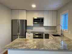 Newly remodeled second floor 2 bedroom apartment. Modern design. Granite countertops. Luxury vinyl flooring. High end appliances - Wolf electric stove, Kraus sink with pre-rinse style pull-down faucet, GE Profile oven, brand new Samsung refrigerator. LED lights with auto sensors. Wall outlets with built in USB ports. Porcelain tiling throughout the bathroom. Large living room leads into kitchen with a bar countertop.
