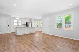 Charming Bungalow Just Half a Mile from Downtown Raleigh Nestled in a prime location, this delightful 3-bedroom, 1-bathroom bungalow offers the perfect blend of comfort and convenience. Situated just half a mile from downtown Raleigh, you'll enjoy easy access to the city's vibrant dining, shopping, and entertainment options. Start your mornings on the inviting front porch, an ideal spot to sit with a cup of coffee and watch the neighborhood wake up or retreat to the cozy side porch, located within the fenced yard. Inside, you'll find an open-concept kitchen featuring a spacious quartz island and sleek stainless steel appliances, perfect for meal prep and casual gatherings. The main living areas feature durable luxury vinyl plank flooring for style and easy maintenance, while brand-new carpeting in the bedrooms adds warmth and comfort. Additional storage is available with both attached and detached spaces, and the fully fenced backyard provides a private area for relaxing, gardening, or entertaining. Don't miss the chance to make this charming bungalow your new home. Contact us today to schedule a viewing and experience all that this property has to offer. Pictures are from before the property was leased. It is currently occupied. Laundry doors being replaced.