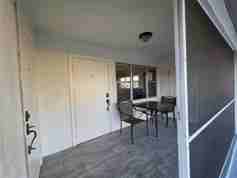 Charming, furnished 2 bedroom 2 bath corner unit. A true gem! Filled with natural light with spacious layout, a screened patio. The unit comes fully furnished and equipped for immediate occupancy. Amenities include community pool, waterfront park with picnic area and designated parking for 2 cars. Convenient location: bike or jog to the beach, minutes from Walmart, dining, shopping, The Gulf Stream Casino and racing. Easy to show anytime. Association requires min 600 credit score. Available starting April 1st 2026.