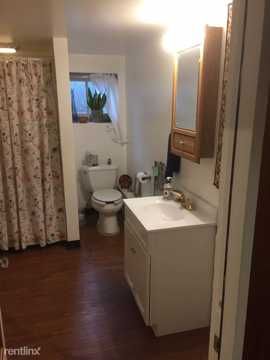 Cute basement unit in house, in nice residential area of Glen Ellyn. Private bedroom, bathroom and lite kitchenette (microwave, electric skillet) area, and adjacent laundry. $575 per month includes gas, water, electric. Lease is month to month. Nice environment. Great for an individual who needs a clean quiet place to eat, sleep, work or study. One off-street parking space only.