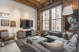 35 Channel Center is a true classic loft building. This home offers 1353 square feet and soaring 12 foot ceilings, finished with incredible wood beams. Sealed concrete floors, custom lighting, Honed Carrera Marble oversize waterfall island and completing the design, a Thermadore 5 burner gas stove. This condo is an open welcoming loft layout ideal for entertaining in style. The custom created master bed includes walk thru floor to ceiling California Closet and ensuite master bath with soaking tub and glass standing shower. There is a large laundry area within the condo with additional storage space and 1 full garage parking space!