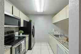 Beautiful 1/1 unit with a charming lake view in the Raintree community. This ground-level corner apartment features tile flooring, a spacious walk-in closet, stainless steel appliances, granite countertops, and an in-unit washer and dryer.