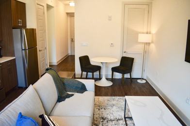 When you enter your Landing home for the first time, you'll notice the modern tones throughout, from the open concept floor-plan to the perfectly paired with the sleek kitchen with stainless steel appliances. Our included furniture and decor are expertly selected and placed for this individual layout, and the mounted Samsung Smart TVs are ready for your enjoyment. Finally, your home is filled with our convenience amenities from the luxurious bedding to the completely stocked kitchen. Every element of your new home invites you to step right into a hassle-free living experience.