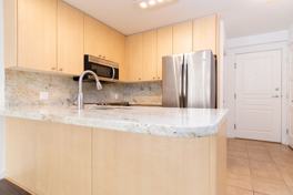 - Granite countertop and backsplash