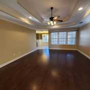 The master bedroom is a serene retreat, featuring cozy carpeted floors, a tray ceiling, and a ceiling fan. The en-suite master bathroom offers a garden tub, a walk-in tile shower, and a double vanity. You'll also love the two spacious walk-in closets for all your storage needs. The guest bedrooms are equally inviting, with carpeted floors and ceiling fans, while the guest bathroom includes a tub/shower combo and durable tile flooring.