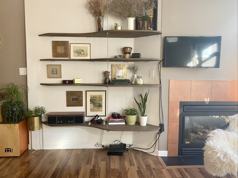 pots and pans, cutlery, plates and glasses can be included if needed. Flooring is wood laminate in the living room and bedroom and tile in the kitchen and bathroom. There is a gas fireplace that heats the unit in the winter (gas is included).