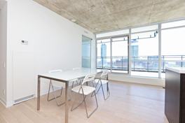 Rarely Available Terrace Unit At The King East. One Bedroom + Den With A 250 Sqf South Facing Terrace. Floor To Ceiling Windows Flood This Unit With Natural Light. Scavolini Kitchen With Caesarstone Counters, Stainless Steel Appliances & Gas Stove. 9 Ft Exposed Concrete Ceilings. Hardwood Floors Throughout. Includes 1 Parking + 1 Locker. Walking Distance To Distillery, Financial District, And Yonge Subway. King Street Car Stops At The Front Door!