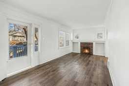 Inside, you will find a sun filled living room with fresh white walls, updated flooring, and a decorative fireplace that adds warmth and personality to the space. Large windows throughout allow for plenty of natural light, creating a welcoming atmosphere.