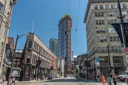 Make your home at the historic Woodward's building of Vancouver's Gastown district. This bright one-bedroom suite offers spectacular views, with exposed concrete ceilings and engineered wood floors. It features large bedroom, stainless steel appliances, and stone counters. The building offers extensive amenities at its Club on its panoramic rooftop, including gym, lounge, and outdoor hot tub. The location is blocks to the downtown central business district, Pacific Centre Mall, and steps away to bus stops as well as the Waterfront Skytrain and Seabus station. Enjoy the neighbourhood's cobbled streets of shopping boutiques, and rotate through its restaurants, coffee shops, and bars: Autostrada Osteria, Birds and the Beets, and Magnet to name a few.