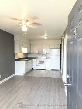 This is a 1 bedroom apartment with 1 bathroom. Featuring all white appliances, modern paint colors, and wood vinyl flooring in main areas! Kitchen amenities include stove, fridge, and microwave. Conveniently located near entertainment, shops, and restaurants. Gated Community - Hud/Section 8 Friendly!