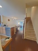 A cozy gas fireplace anchors the living space - perfect for cool evenings. The kitchen offers ample cabinetry, solid