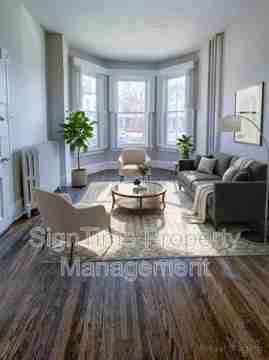 Spacious 2 Bedroom / 1 Bathroom apartment located on the 1st floor of historic building on Broadway. This unit features tall ceilings, large windows, refinished hardwood floors, fresh paint, updated kitchen w/ luxury vinyl plank flooring, quartz countertops, updated bathroom with new ceramic tile. Building features off street parking, option for extra storage area, and remodeled community laundry room. Water, Sewer, Trash, and Heat is included in the rent.