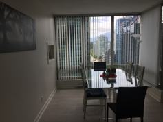 Spacious 1300 sqft 2 bedroom, large den, 3 bathrooms at the Residences on Georgia! This beautiful unit offers new laminate flooring throughout, large living room, large master bedroom with walk in closet, newer washer & dryer, fridge, stove, microwave & dishwasher. 1 underground parking & 1 storage locker included. Amenities: 24-hour concierge, exercise room, theater room and business center. Great location close to Robson Street Shopping, Restaurants, Transit, Stanley Park and Coal Harbour.