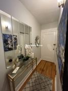 This one-bedroom offers a comfortable layout with a spacious bedroom, living room, and galley kitchen. Hardwood floors and natural light create a clean, inviting space.
