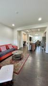 Highly sought-after townhomes at Mill Creek Meadows! Close to parks, family dentistry, urgent care, day care center & new retail center. Contemporary & functional living spaces. EAST FACING, Light & bright with high ceilings and open floor plan. Upgraded wood laminate floors throughout main level, chef's kitchen with huge granite slab island, stainless steel appliances and custom tile backsplash. The bright, spacious family room with fireplace and balcony for outside seating is ideal for entertaining. Upstairs are two good sized bedrooms and a Den/Office. Master has attached bathroom and there is a guest bathroom and laundry room on this level. The home has an attached 2 car tandem garage with storage + driveway parking. Ample guest parking at the front of the building. The home is in a meticulously maintained community and overlooks large green play area with picnic tables.