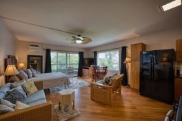 Gorgeous views from this end unit with picture window overlooking Hilo Bay & Mauna Kea. AC! Beautiful and very tastefully remodeled with granite countertops and strand bamboo flooring, fully furnished extra large executive studio by Hilo Bay with beautiful views of the bay. The unit is turn-key with air conditioning and all utilities; electricity, water, gas, TV cable, internet, etc. included (except phone). Full size kitchen with full size refrigerator (new this year) and gas stove. Fully equipped with new kitchen cabinets with granite counters, all pots and pans, TV, china, linens and everything you need are included---just bring your toothbrush and clothes!