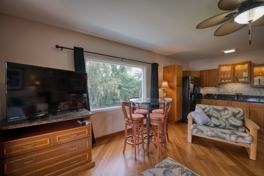 Queen bed and also a sofa sleeper for your guests. Awesome bath with fresh tile and new granite-topped vanity. You're going to love the beautiful green glass leaf vessel sink.