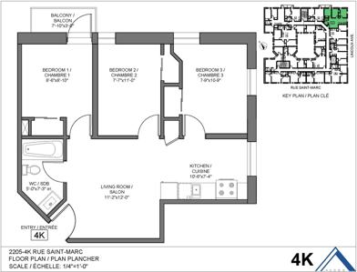 2205 Rue Saint-Marc #4K is a 3 bedroom, 1 bathroom apartment for rent. It is located in Montréal. It has apartment amenities including balcony, air conditioning, and dishwasher.