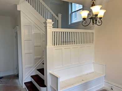 Absolutely gorgeous fully renovated house! Walk in to a beautiful staircase, large formal dining room, and living room with built-in fireplace and stained glass windows. Fully equipped eat-in kitchen comes with brand new stainless steel refrigerator, dishwasher, and gas stove. Second floor has first full bathroom, second bedroom, and bonus room fit for an office or nursery. Huge master suite has beautiful stained glass windows, fireplace, and fully remodeled bathroom with en suite laundry! Third floor has two spacious bedrooms and a half bathroom. Entire house has been freshly painted, all flooring is brand new. Window A/C provided in bedrooms and living room. Private covered front porch and back patio, nice grassy back-yard. On street parking.
