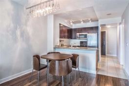 Live Luxuriously In This Dreamy 2 Bedroom Suite! Nearly 800Sqft Of Upgraded Rich Dark Floors & A Chef's Kitchen With A Breakfast Bar & Stainless Steel Appliances. Walk-Out From Extra-Large Living & Dining Space To Enjoy The Sunrise From Your Private Balcony! The Over-Sized Master Suite Has A Large East-Facing Window & A Walk-In Closet. The 2nd Bedroom Has A Large East-Facing Window & Double Closet & Makes The Perfect Guest Suite/Home Office. Unwind In Your 4-Piece Spa Bathroom With A Tub. 1 Parking Spot Included! World-Class Amenities: Indoor Pool, Hot Tub, Sauna, 24Hr Concierge, Visitor Parking, Gym, Yoga Studio & Party Room.
