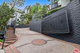 Beautifully renovated Mid-Century home offering abundant natural light, privacy, and sweeping treetop and city views. The open kitchen flows into the living and dining areas, featuring a fireplace and a spacious entertainer's balcony. The home offers 3 bedrooms and 4.5 bathrooms, plus a bonus room converted into a large suite. All bedrooms are en-suite, with select rooms featuring fireplaces and beautiful views. A large family room with fireplace opens to a private patio, and an indoor jacuzzi adds a spa-like element to the home. Perched atop a gated private driveway on a quiet street, the property offers exceptional privacy while being just minutes from Rodeo Drive, Beverly Hills shopping, and dining.
