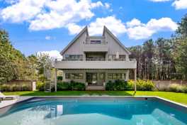 Rental Reg.#: RP250677. Designer modern home set on a private acre in Southampton. This architectural gem features three floors of living space, each floor with additional outdoor terrace/deck areas allowing for seamless enjoyment to the open air. The top floor offers a comfortable den/media/bonus room area with a full bath, a large lounging deck as well as a small balcony. The main floor contains a spectacular chef's kitchen with outdoor dining space, a full bathroom, and large open living/dining area with direct staircase access to the pool area. The lower level offers an ensuite primary suite as well as three additional guest rooms and full bathroom. A large changing/wet area opens directly to the lushly manicured backyard, complete with heated pool and sun-soaked lounging areas.
