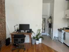 Large Studio in the south slope with expo. brick, wood floors, and high ceilings, Full kitchen & bath, A/C, and great light. Close to shopping and train. Heat & Hot water are extra. No dogs are allowed. Photos are from previous tenant. Available June 1.