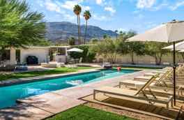 Welcome to our stunning vacation rental, where luxury meets the comfort of home. Say hello to your dream getaway at Desert Las Palmas, a stylish mid-century modern home that captures the essence of Rancho Mirage's glamour and sophistication. Get ready to indulge in the ultimate relaxation as you step into this thoughtfully re-imagined oasis. With breathtaking mountain views and 19,166 square feet of land for unrivaled privacy, you'll feel like you've entered a true desert paradise. Located in the heart of Rancho Mirage, just a short stroll away from the renowned outdoor shopping and dining destination, The River, Desert Las Palmas offers convenient access to all the pleasures the city has to offer. Inside, you'll find a beautifully designed, fully-stocked kitchen, featuring new stainless steel appliances, a side-by-side fridge, a gas stove, and sleek quartz countertops. Enjoy the intimate setting of the kitchen as you prepare a quiet dinner or entertain friends and family around the bar seating for six. Adjacent to the kitchen is a stunning dining area, complete with a glass table and comfortable seating for eight. The open floor plan invites you to seamlessly transition from the chic interior to the magnificent backyard. Experience true indoor-outdoor living as the glass sliders connect you to your private pool oasis. With a mix of mid-century and modern furnishings, vibrant art, and captivating lighting, this vacation home offers a sophisticated and stylish experience that will delight the entire family. But there's more - coming soon! We're proud to announce the addition of a brand new, on-site professional pickleball court, set to be completed on December 15th. Get ready to engage in exhilarating matches with your loved ones and create lasting memories right in your backyard. Escape to Desert Las Palmas and discover the perfect blend of luxury, charm, and entertainment. Book your unforgettable stay with us today and let the vacation of your dreams become a reality.
