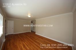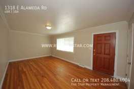 Four Bedroom Home Available in Central Pocatello! This 4 bedroom, 1 bathroom home has been renovated and features updated carpet, paint, kitchen cabinets, and countertops. The main living room showcases beautiful hardwood flooring, creating a warm and inviting space. The kitchen features light wood cabinetry complemented by dark flooring and countertops, with a sliding glass door off the dining area that leads directly to the backyard. The bathroom includes an updated white vanity with light-colored flooring, giving the space a clean and modern feel. Additional amenities include gas forced heating and central air conditioning, a fenced-in backyard, two living areas perfect for relaxing or entertaining, and convenient off-street parking. Conveniently located in central Pocatello, this home offers easy access to I-15 and nearby shopping at Big Lots, WinCo, and Fred Meyer.