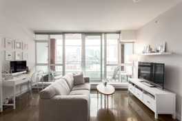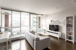 V6A - Strathcona's most regarded, sought after, modern, boutique concrete building close to amazing restaurants, entertainment, transit, Mount Pleasant and all the Downtown action! This bright, open concept one bedroom/one bathroom with over-height ceilings, polished concrete floors and sliding, glass walls offer a cool, industrial vibe while giving you a spacious and versatile floor plan. Sleek, linear kitchen with walnut cabinetry, white stone counters, s/s appliances, and a movable island. HUGE bathroom, the biggest of the 1 bedroom floorplans! In suite laundry plus a parking stall underground. Large patio with city outlook. Well managed building with fitness centre, meeting room and concierge.