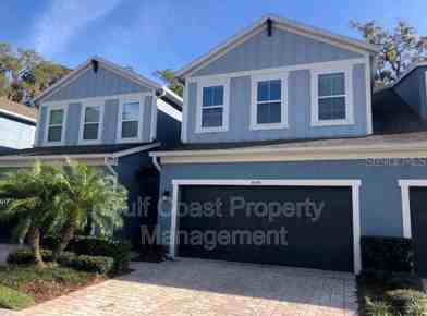 Annual rental townhome showcasing 3 bedrooms, 2.5 bathrooms, and 2 car garage and hardwood flooring throughout. The main level is spacious and bright with volume ceilings and large windows. Perfect to accommodate any large-scale furniture. The bedrooms, baths and loft area are all on the second story. The master bedroom offers a private, screened in balcony. Surprises include a full size laundry room, eat-in kitchen, oversized garage, all on a private cul-de-sac street. This home is very energy efficient! Hammock Park is a gated community, surrounded by 2 community ponds and mature lush landscaping. Close to Downtown Sarasota, the area's world-renowned beaches and easy access to I-75. First and security along with approved background check required to move in. Pet friendly, additional pet deposit and some restrictions apply. Water is Included!