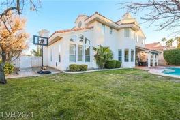 Stunning Summerlin Home In Gated Belaire Estates*Nearly 1/3 Acre Corner Lot With Covered Patio, Sparkling Pool & Spa, Mature Grass & Foliage*Newer Interior Paint*Custom Flooring Throughout*Upgraded Lighting, Fans & Fixtures*Plantation Shutters*Stacked Stone Fireplaces*Spacious Living, Dining & Family Rooms*Wetbar*Island Kitchen With Stainless Steel Appliances Including Subzero Fridge, Granite Counters, Custom Calcutta Marble Backsplash, Breakfast Bar, Nook & Walk-In Pantry*Downstairs Bed & Bath*Nice-Sized 2Nd Bedrooms*Primary Suite With 2-Way Fireplace & Walk-In Closet*Renovated Primary Bath With Jetted Tub, Separate Shower, Double Vanities & Make-Up Vanity*Water Softener & R/O*Great Location Near Summerlin Retail & Restaurants, Parks, Jogging Trails & 215/Summerlin Pkwy*Pool Service Included*