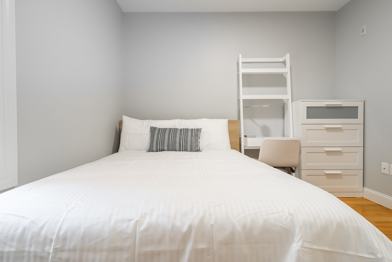 No broker fee! Only last month deposit needed. RoostUp is offering a beautifully renovated private bedroom in Cambridge. Less than a 15 minute walk to Kendall Sq MBTA Red Line train station in a 4 bedroom/2 bath apartment. Check out RoostUp's 100+reviews averaging 4.8-stars on Google and Facebook. Completely furnished all-inclusive concept from RoostUp. Fully-equipped kitchen included with granite countertops, new appliances and 4K Smart TV. RoostUp amenities include all utilities, high-speed WiFi, in-unit laundry, central air, and bi-weekly cleaning. Here's what is included: Furnished private bedroom ------------------------------------------------------ - New bed and high quality mattress - Matching dresser with desk, lamp and chair - Full length mirror and coat rack - Custom closet system with built in storage Stocked kitchen and furnished living area ------------------------------------------ - Renovated kitchen with new countertops & stainless steel appliances - Kitchenware, dishes, glassware and flatware - Fully furnished including sofa, chairs, coffee table - 4K Smart TV Utilities & Cleaning ------------------- - All utilities (gas, electric, wifi) - Bi-weekly professional cleaning - 1Gbps WiFi - Keyless smartphone locks - Central A/C - Free in-unit laundry - Weekly trash and recycling removal - Included for one flat monthly fee RoostUp never charges a broker fee or security deposit. Only First and Last Month Rent due at lease signing. Sorry, no couples or pets. The RoostUp application process includes a credit and background screening. International applicants can submit copies of valid passport & visa. Please note there is an application process that includes a credit and background check.