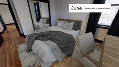 This Queen room in Brighton offers flexible lease lengths, including a standard 12-month term and options up to 18 months. You pick your custom start and end date. Monthly rent rate is determined by furnishing preference, move-in date and move-out date. Speak to a June representative for recommendations on the best stay duration for the lowest rate.