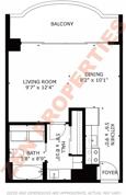 Studio for rent at Lunalilo Tower. 1 parking. 388 sq ft interior and 80 sq ft lanai.