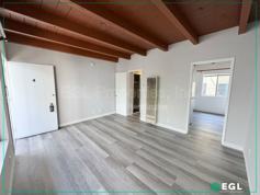 * Hardwood flooring; kitchen area equipped with Refrigerator and Stovetop.