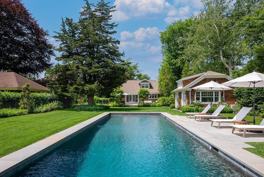 RP251134. Bridgehampton Village beauty available for the first time as a seasonal rental. This cottage was originally built in 1930 and lovingly renovated in 2017/18. The undeniable curb appeal sets the tone with a charming front porch entry which opens to the beautifully appointed and professionally decorated Living room with large windows and wood burning fireplace. This room opens into an inviting open family room and to the open dining room with doors leading to the new bluestone deck, fenced back yard and stunning pool - all enhanced by landscape lighting and an outdoor sound system. The open, windowed kitchen has quartz counter tops, tons of storage and stainless appliances. A first floor master bedroom (king) with en suite bath and a powder room complete the first floor. A gracious stairway leads to the second floor which offers three guest bedrooms and a full marble bath with double vanity. The private back yard offers lovely mature plantings and lush lawns as well as a light filled, renovated pool house with entertaining kitchen (2 bev fridges, ice maker and wet bar), a large TV and a built-in desk work area. The 16x45 heated Gunite pool is surrounded by lush landscaping and equipped with an automatic coved to keep heat in. Parking for 4 to 6 cars. This property is located in historic Bridgehampton and is minutes to Main Street and countless dining and shopping options. Train, Jitney, wine & grocery stores a 5 minute drive. Listing ID: 876050