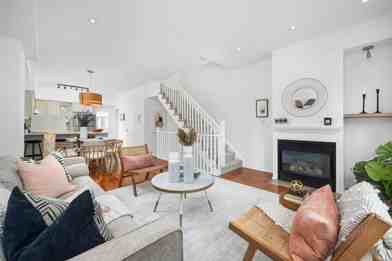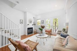 There's a spacious kitchen and living room with even more natural light, in-house laundry, a patio with gas BBQ hookup, and a 1-car garage + additional outdoor parking space (so 2 parking spaces total). It has central heating and air conditioning, and nice modern lighting and fixtures.