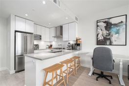 Luxurious bright 1 bedroom + DEN + 1 Bathroom located 2 blocks from the GILMORE Skytrain station with City view and a large balcony for outdoor entertaining! Spacious open concept floor plan, wide plank laminate flooring, custom cabinetry, quartz countertops, stainless steel gas cooktop and oven, double sink with professional kitchen faucet with spray, refrigerator, hood fan, microwave, in-suite full-size washer and dryer, AIR-CONDITIONING, Concierge, 1 parking and 1 locker included.