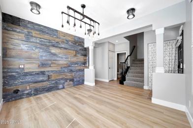 Beautiful rental in the heart of Verrado, ideally located less than a block from Main Street, Verrado Golf Club, and the Village Green. Enjoy the convenience of being within walking distance to gourmet dining, cafes, shopping, and community events. This home features an inviting front porch and a thoughtfully designed interior with an industrial rustic style, blending modern finishes with warm textures. The open kitchen offers stainless steel appliances and connects seamlessly to a spacious dining area highlighted by a sliding barn pantry door. The living/media room features custom wood beams, a brick accent wall, and industrial-inspired lighting throughout. Outdoor living spaces are beautifully landscaped and perfect for entertaining, with a lattice-covered heated spa, fire pit table, and built-in BBQ. The private balcony off the primary suite provides an additional retreat with scenic views. Pest control and landscape maintenance are included. This home is well-maintained and located near parks, schools, and recreational amenities, making it an ideal choice for families or anyone seeking a vibrant Verrado lifestyle.