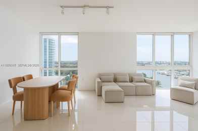 Furnished and Renovated corner unit. Abundance of windows providing natural light and panoramic views (river, yachts, and breathtaking sunsets.) Two Master Bedrooms feature en-suite bathrooms and walk-in closets, positioned on opposite sides of the unit for enhanced privacy. Parking and Storage available at extra cost. Pets are welcome in this unit. This gated community offers a serene living environment with a beautiful park located right next door, perfect for relaxing walks and outdoor activities by the river. Centrally Located: 8min airport, 10min downtown, 8min wynnwood, 13min Brickell, 16min from Miami Beach, 15min to Coral Gables, 5 min hospital. Water and Trash included in rent