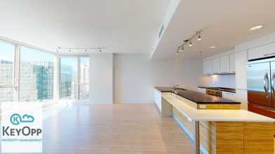 Live a life of lavishness and luxury in this gorgeous two-bedroom two-bathroom condominium. Perked on the 19th floor in a modern and well-maintained high rise, this unit boons visitors with its breathtaking city views and modern interior design. From the entrance, you are greeted with a contemporary and sleek kitchen, beautifully polished hardwood floors, and large floor-to-ceiling living room windows that permeate a great amount of natural light into this gorgeous condo. The overhead lighting perfectly displays the beautifully shiny kitchen which contains, high-grade coated wood and white cabinets, glistening black and white quartz countertops, and effortlessly built-in stainless steel appliances. Both bedrooms receive an amazing amount of sunlight and a gorgeous view on the Folsom St. side. Live in your fantasy home today!