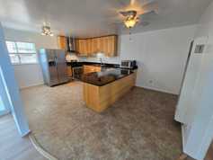 Single-family detached home with large living room with vaulted ceilings. Big, open kitchen with 10 ft. breakfast bar and ceramic tile floors.