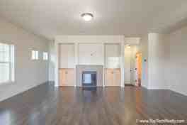 * Living room has a cozy gas fireplace and custom cabinet built-in, along with a built-in space above the fireplace for a tv
