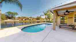 Outside, the screened lanai leads to a beautiful pavered pool deck, offering serene lake views within a fully fenced backyard.